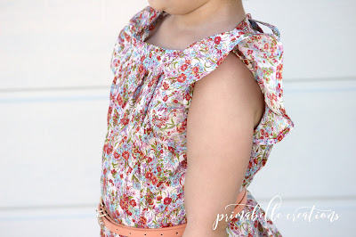 This beautiful pattern features a boat neckline with soft pleats flowing below, gorgeous full flutters, a loose flowy fit that can be cinched in with a belt for a different look and its finished with either a tie or button closure at the back. As with all JillyAtlanta Patterns the finishes inside make it just as pretty as the outside. The Angelica comes in size 2T through to 14. Works best with flowy fabrics like lawn, voile, rayon etc.
